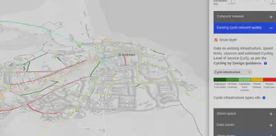 Illustration of the Network Planning Tool (NPT) results for St Andrews