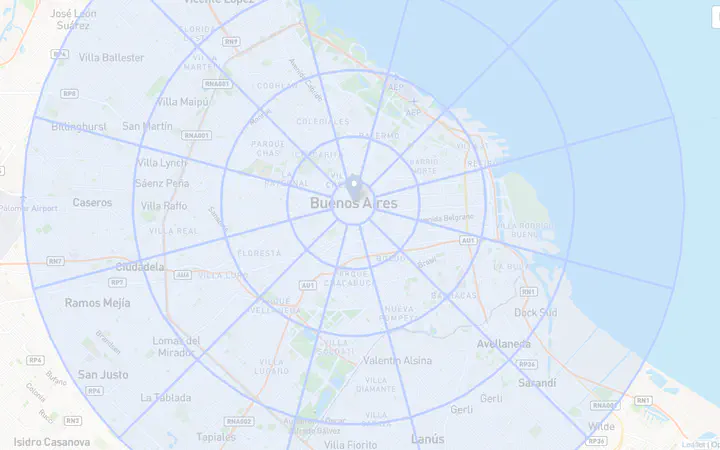 The ClockBoard zoning system in Buenos Aires generated by zonebuilder software.